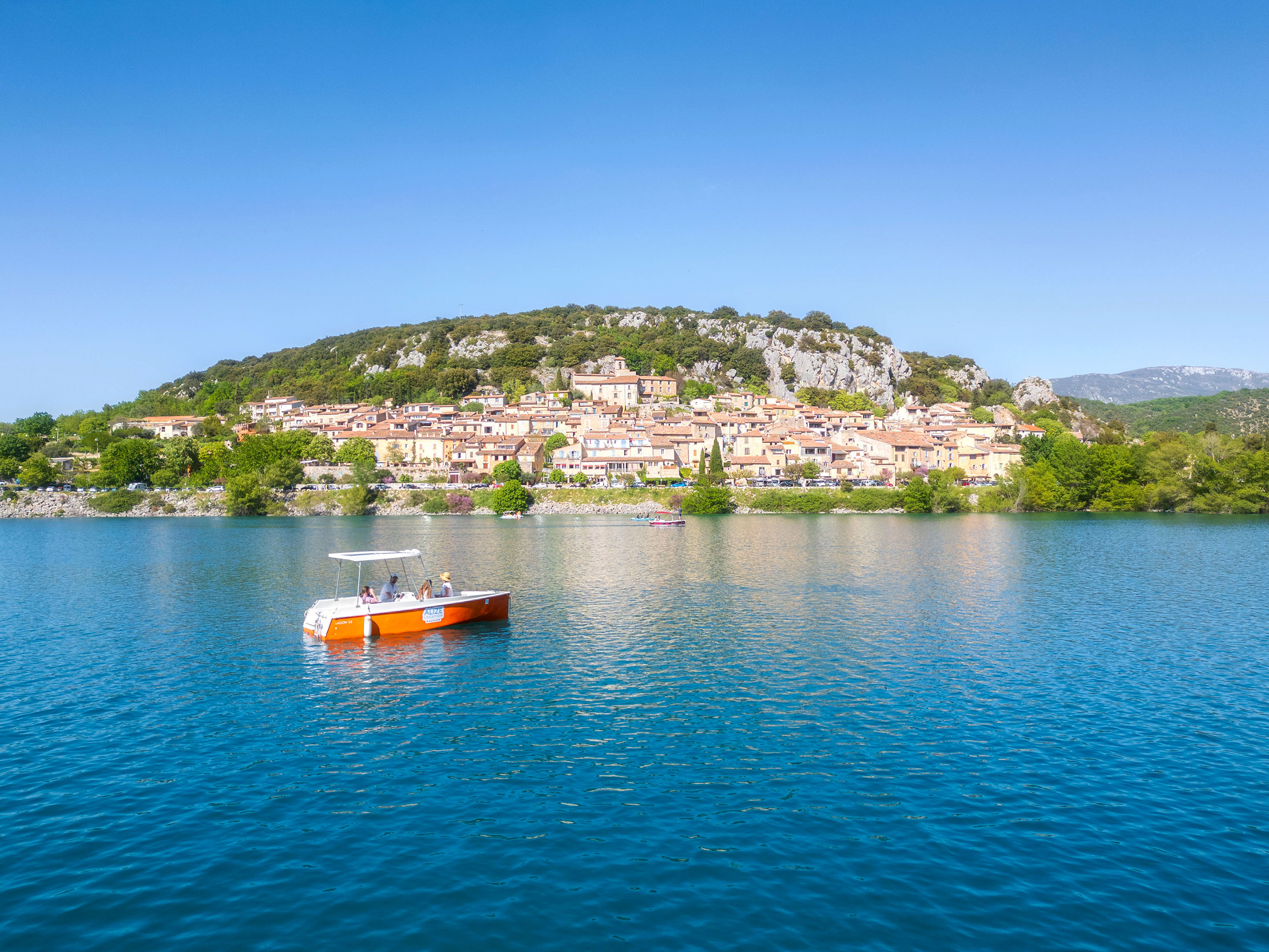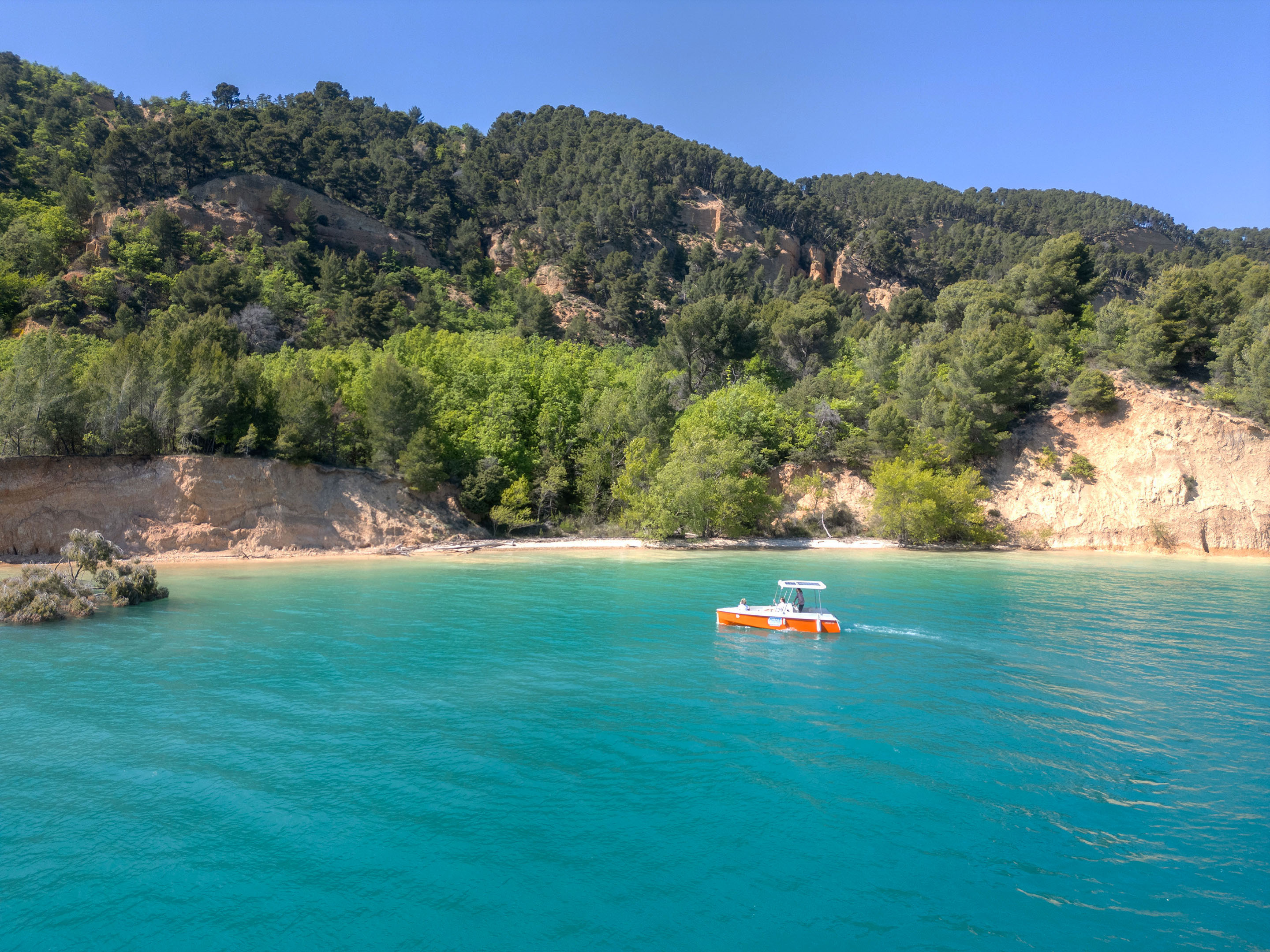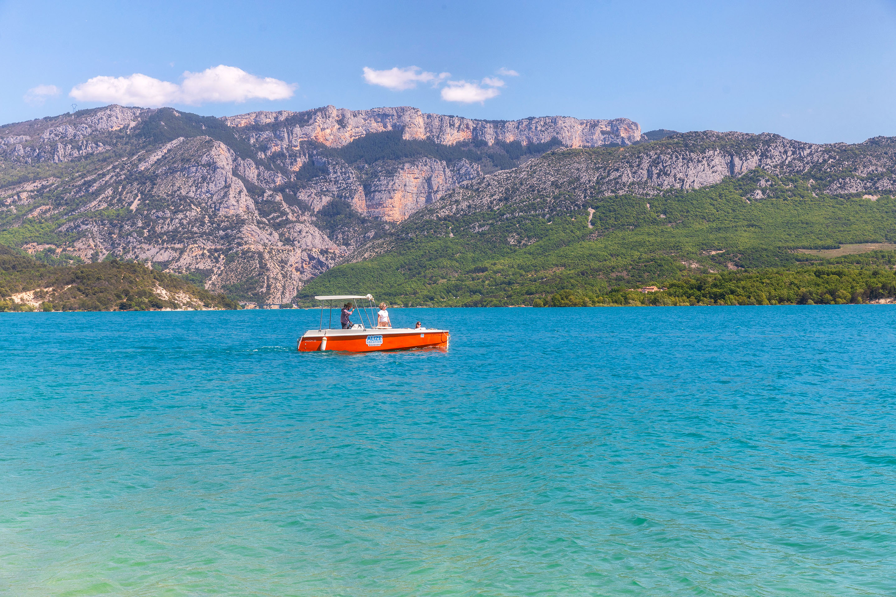 Rent one of our electric boats from the village of Bauduen. With easy and license-free steering, whether alone, with family or friends, you will find happiness here! The electric boat is accessible to everyone and for everything—it will let you sail as you please on the emerald waters of Lake Sainte-Croix.